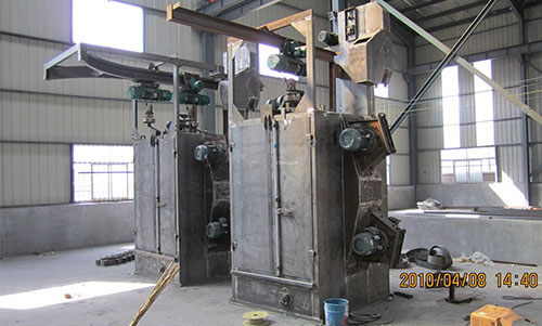吊鉤A在進(jìn)入拋丸清理室進(jìn)行拋丸的時候,吊鉤B可以在外面裝卸。